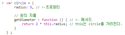 이처럼 객체는 프로퍼티와 메서드로 구성된 집합체입니다. 프로퍼티와 메서드의 역할은 다음과 같습니다.